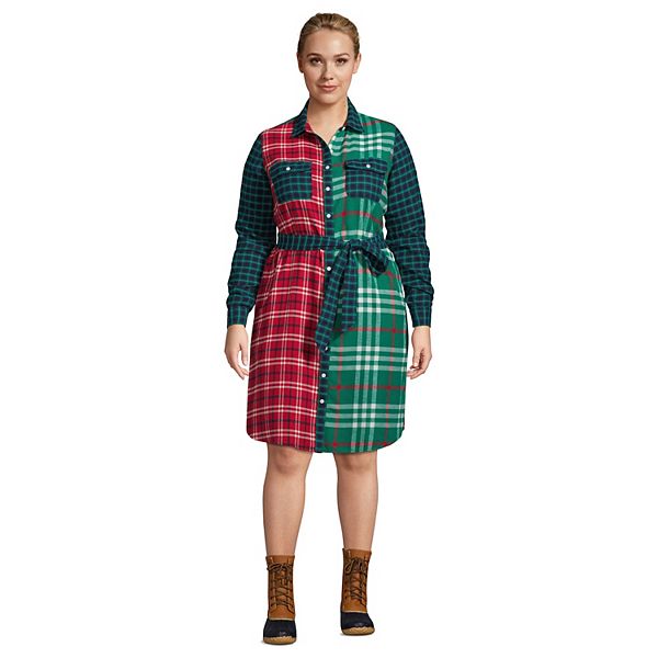 Plus Size Lands End Long Sleeve Button Front Flannel Shirt Dress